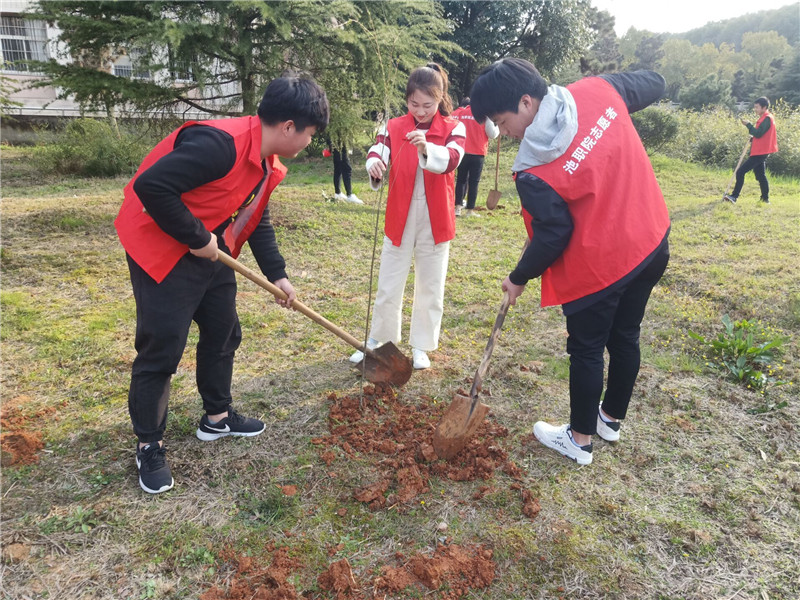 春暖花开,百花吐蕊,又到了万物生长的季节。为了进一步提高大家的环保意识,美化校园环境。3月15日,王风芹老师带领池州职业技术学院青年志愿者协会成员,在尚智楼前开展“全员义务植树、共建绿色校园”为主题的义务植树活动。
